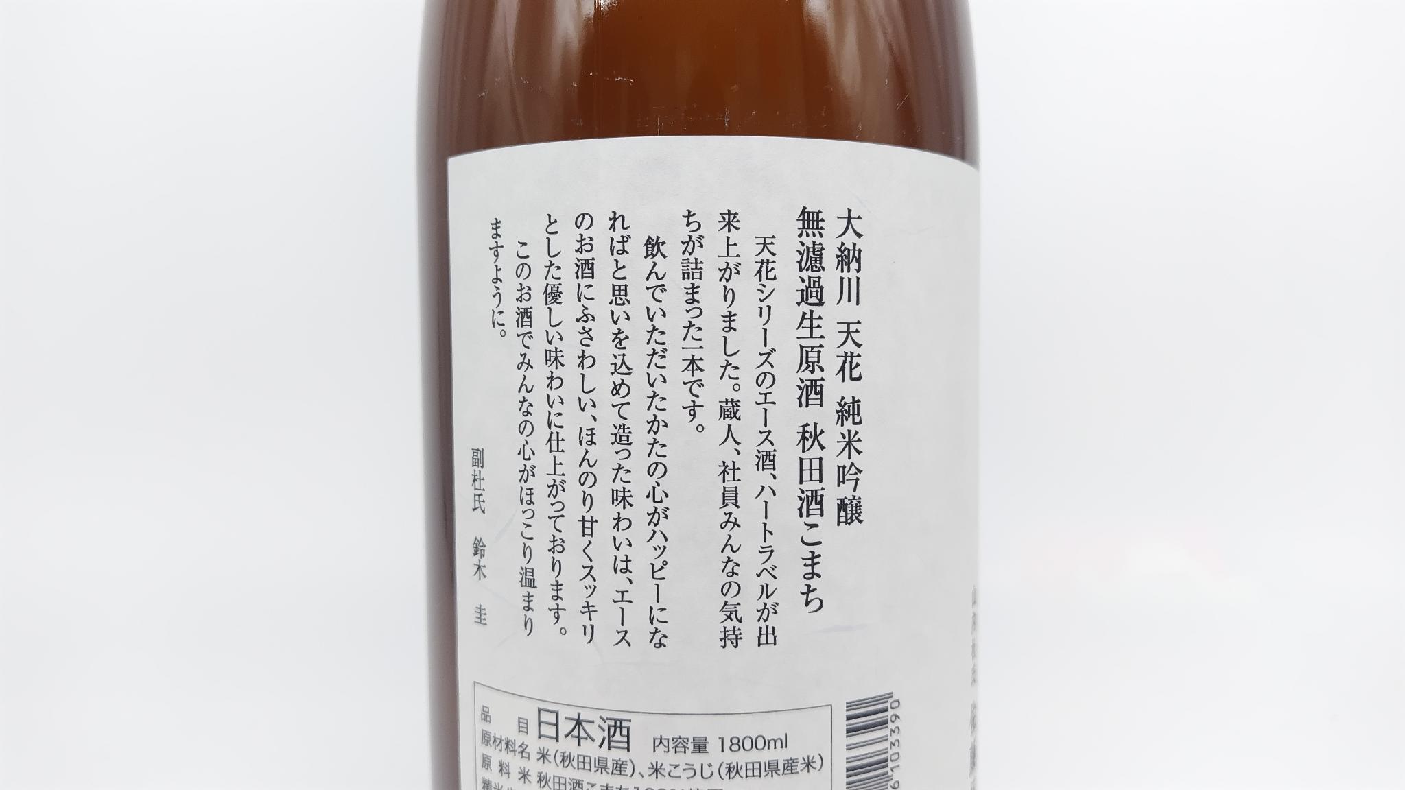 ~大納川 天花 純米吟醸 無濾過生原酒 ハートラベル ~