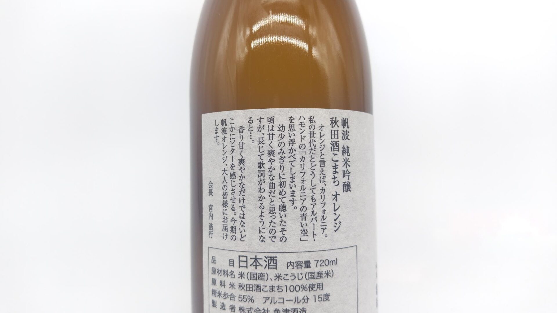 〜帆波 純米吟醸 秋田酒こまち オレンジラベル 無濾過生原酒 〜