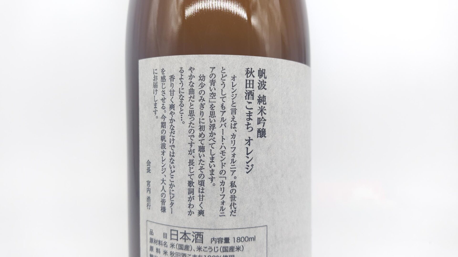 〜帆波 純米吟醸 秋田酒こまち オレンジラベル 無濾過生原酒 〜