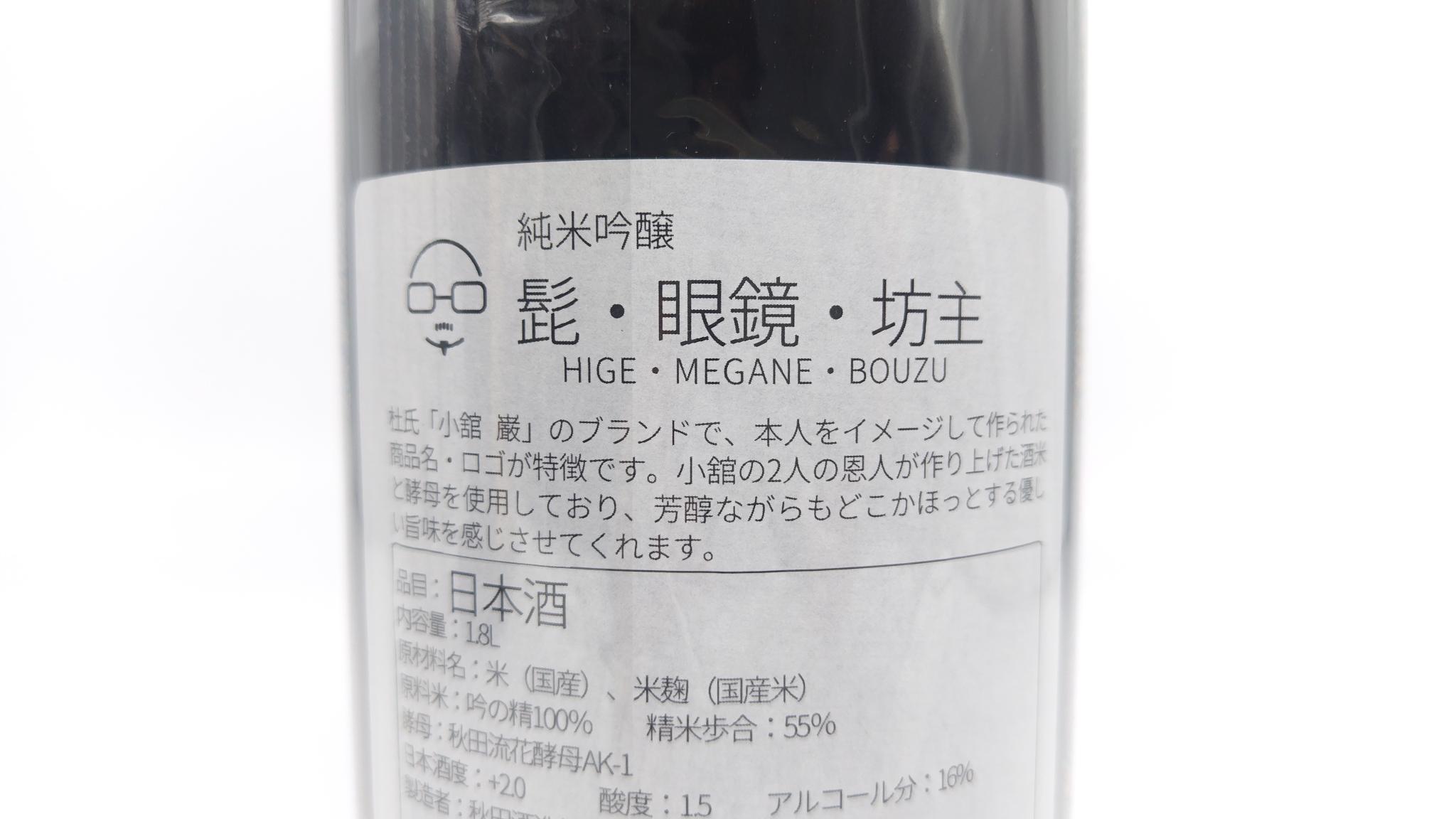 日本酒 秋田晴 純米吟醸 髭・眼鏡・坊主 火入れ 1800ml 【秋田県 秋田酒造】 | まちの地酒店 酒幸仁